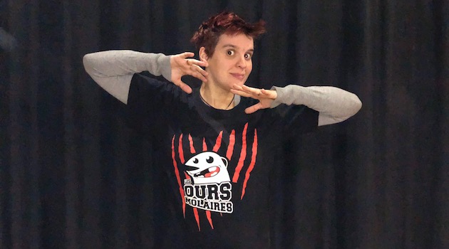 Damoiselle Ours espérant que si elle ferme les yeux sur scène personne ne remarquera sa présence. Prend parfois des positions incongrues mais elle les tiendra toute l’impro, quoi qu’il en coûte !!